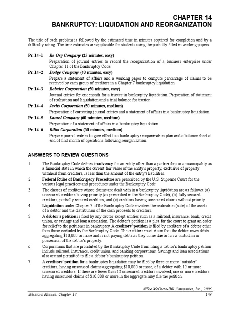 Chapter 14 Modern Advanced Accounting Review Q Exr Pdf Bankruptcy In The United States Bankruptcy